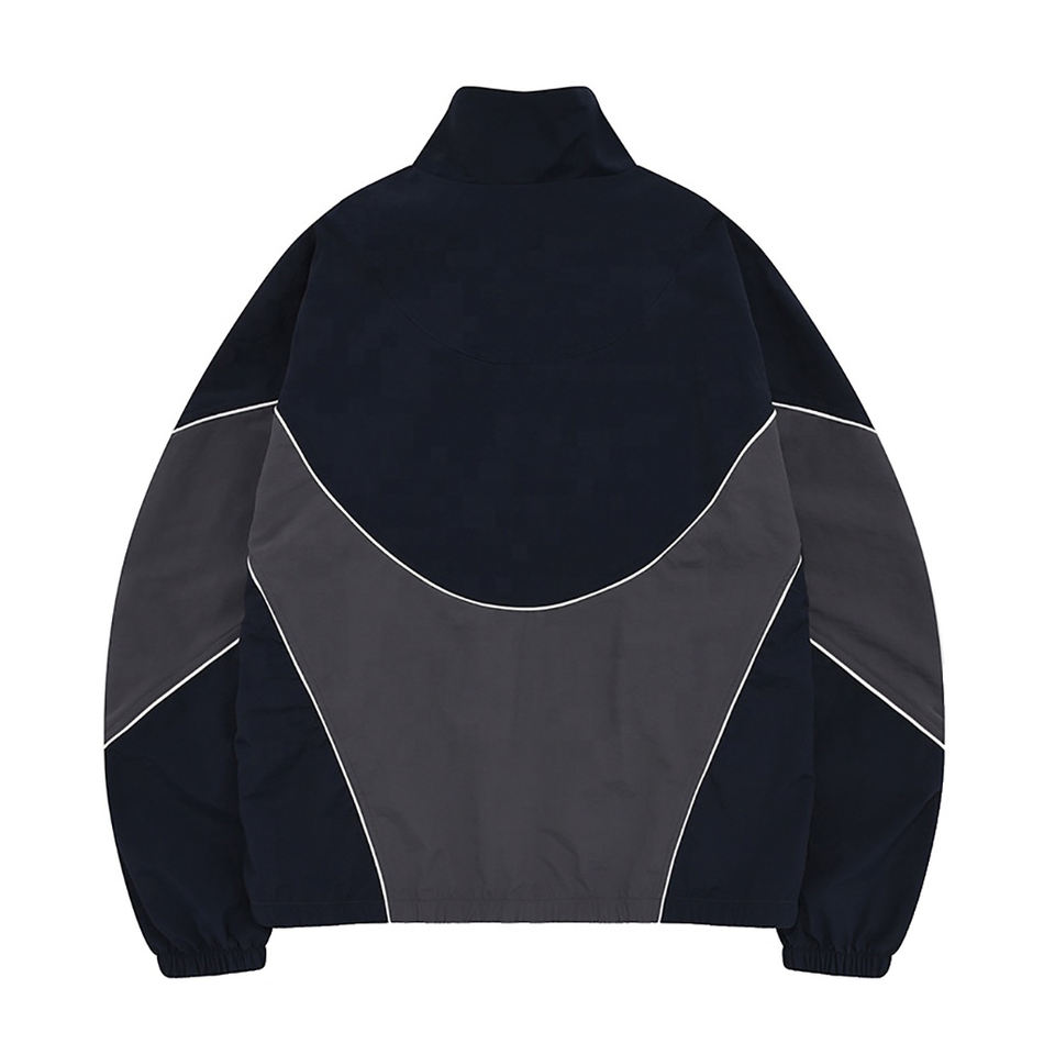 Custom Zip up Embroidered Logo Retro Nylon Track Jacket With Piping Blank Softshell Outdoor Jacket Windbreaker Men