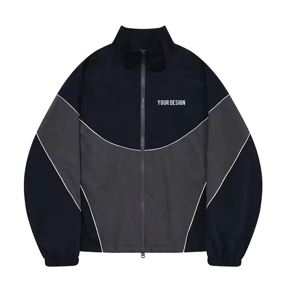 Custom Zip up Embroidered Logo Retro Nylon Track Jacket With Piping Blank Softshell Outdoor Jacket Windbreaker Men