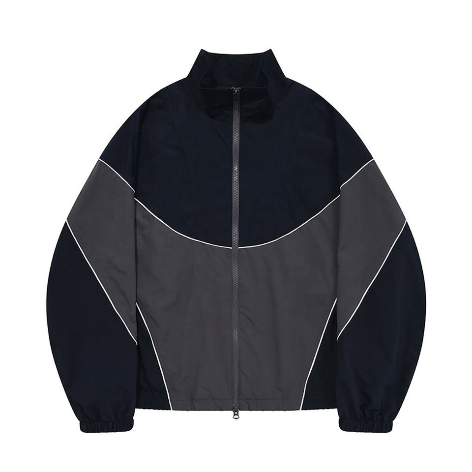 Custom Zip up Embroidered Logo Retro Nylon Track Jacket With Piping Blank Softshell Outdoor Jacket Windbreaker Men