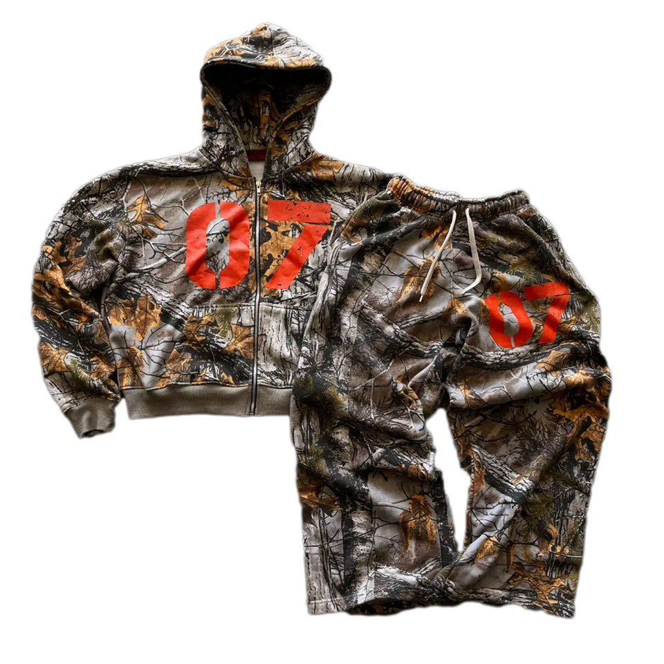 Custom Zip up Sweatsuit Manufacturer Distress Patch Acid Wash Hoodie and Sweatpants Set Flared Tracksuit for Men