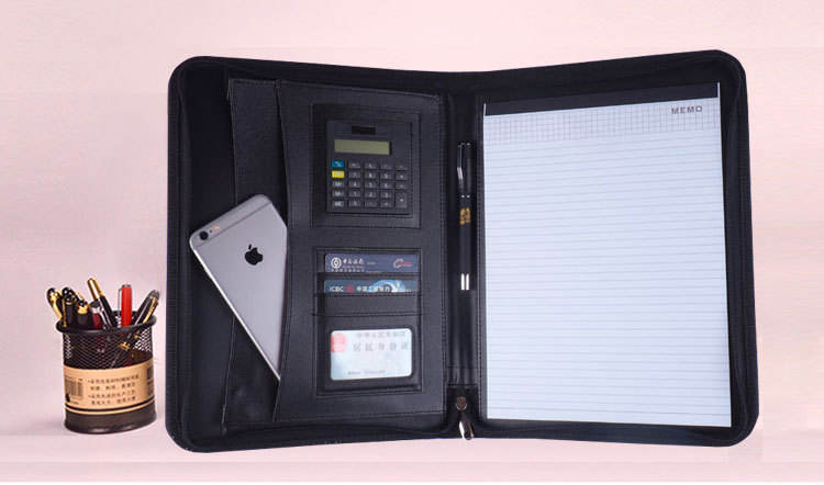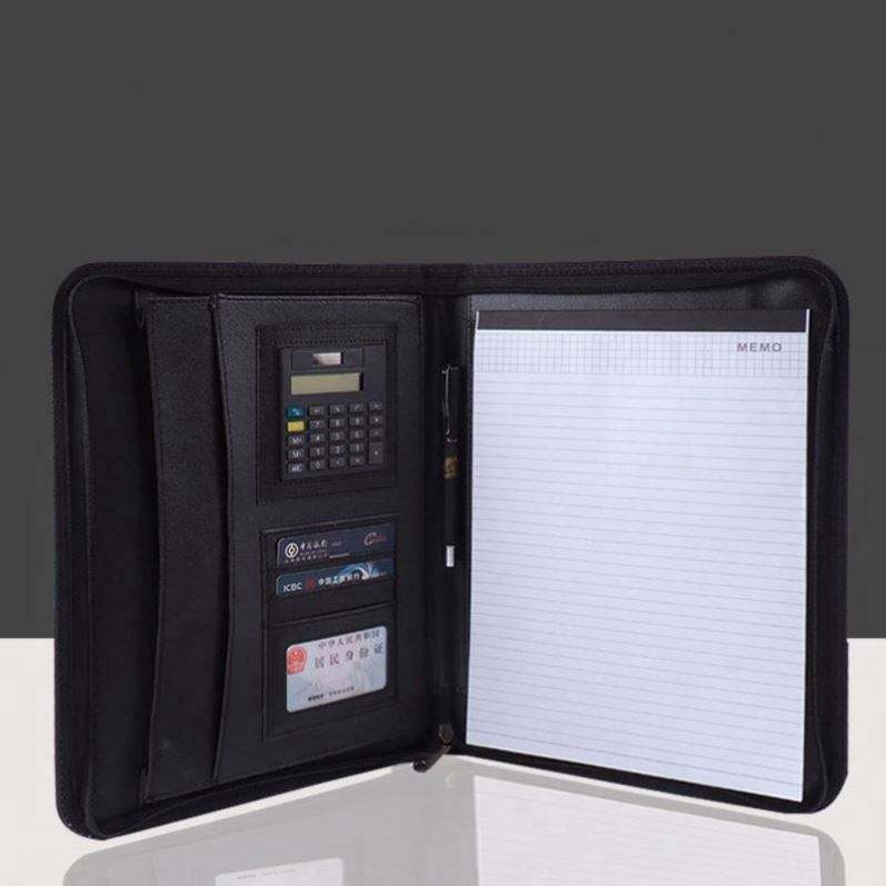 Custom Zipper PU Leather A4 Presentation Folder for Automotive & Insurance Corporate Gifts Promotional Advertising
