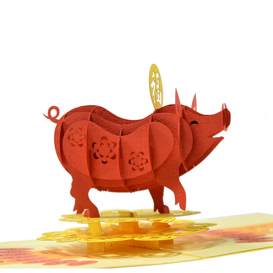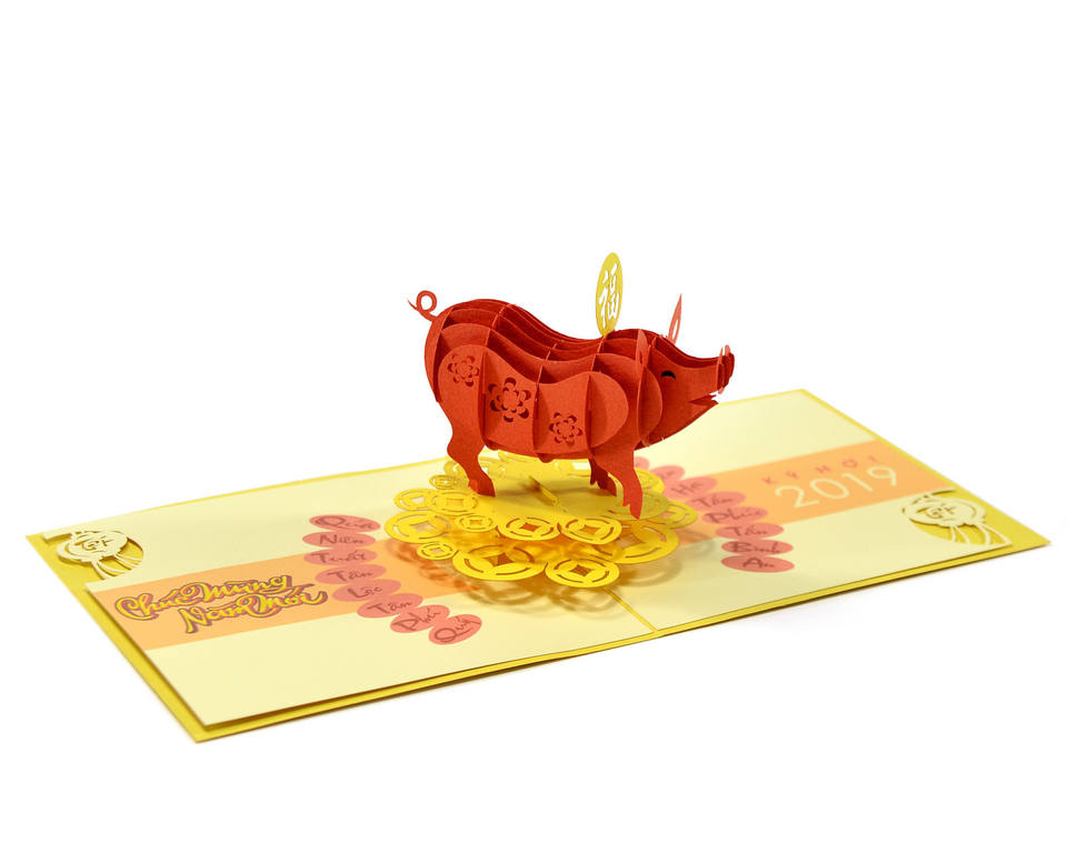 Custom Zodiac 3D Popup Greeting Card with Pig Symbol to Happy New Year in Vietnam