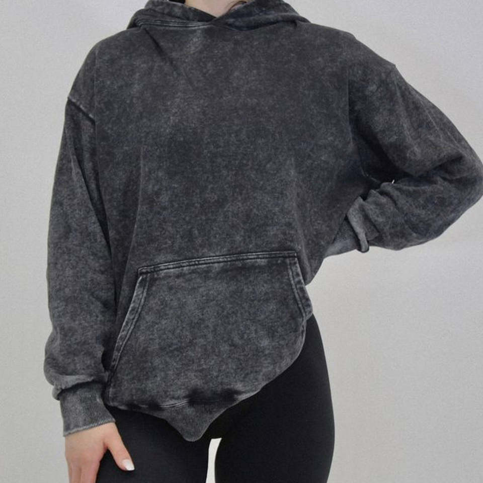 Custom acid wash hoodie men women blue fleece sweatshirt streetwear oversized vintage washed drop shoulder pullover