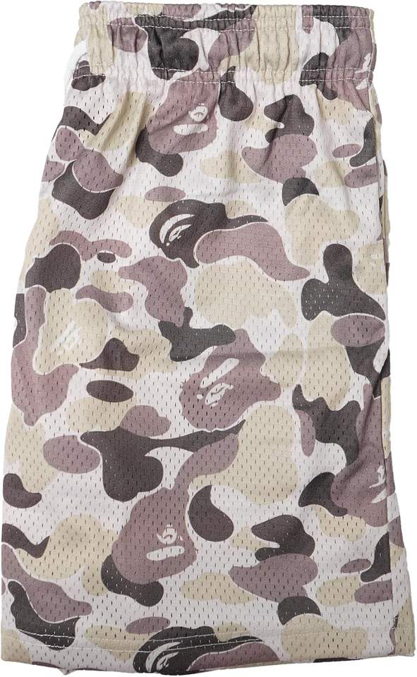 Custom beige camo basketball shorts sublimated mesh fabric elastic waistband drawstring breathable lightweight sports shorts