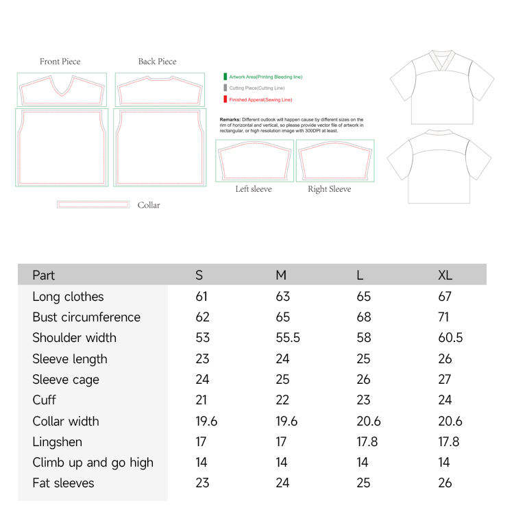Logo position:Front, back, Left Sleeve, Right Sleeve, lower hem, back neck