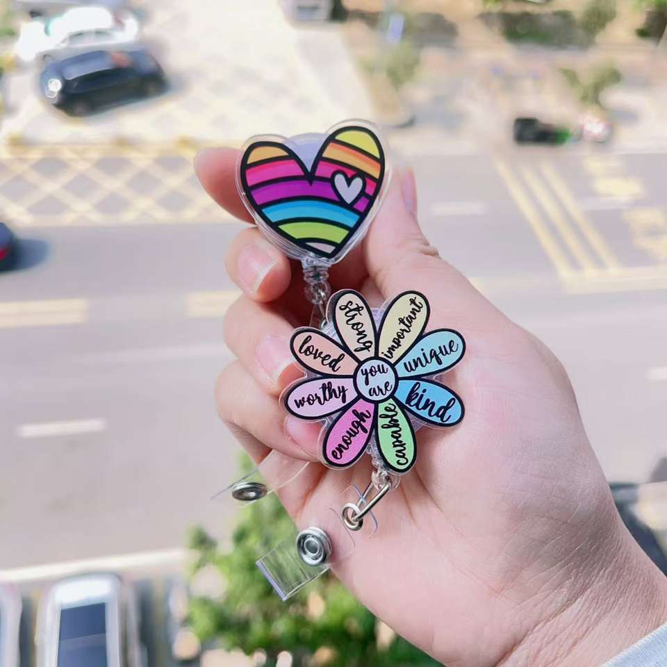 Custom clear Acrylic Rainbow Retractable Id Card Holder Badge Reel Fashions Mini Back Clip Badge Spring Reels