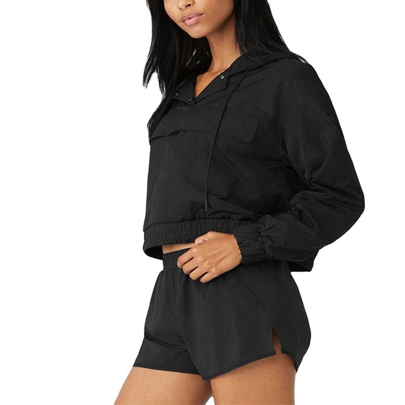 Custom Cropped Hoodie Set for Women Shorts Windbreaker Nylon Shorts Set 2026