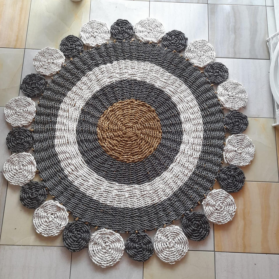 Custom design round seagrass carpet natural straw rugs handbraid raffia rug for living area and dining spaces