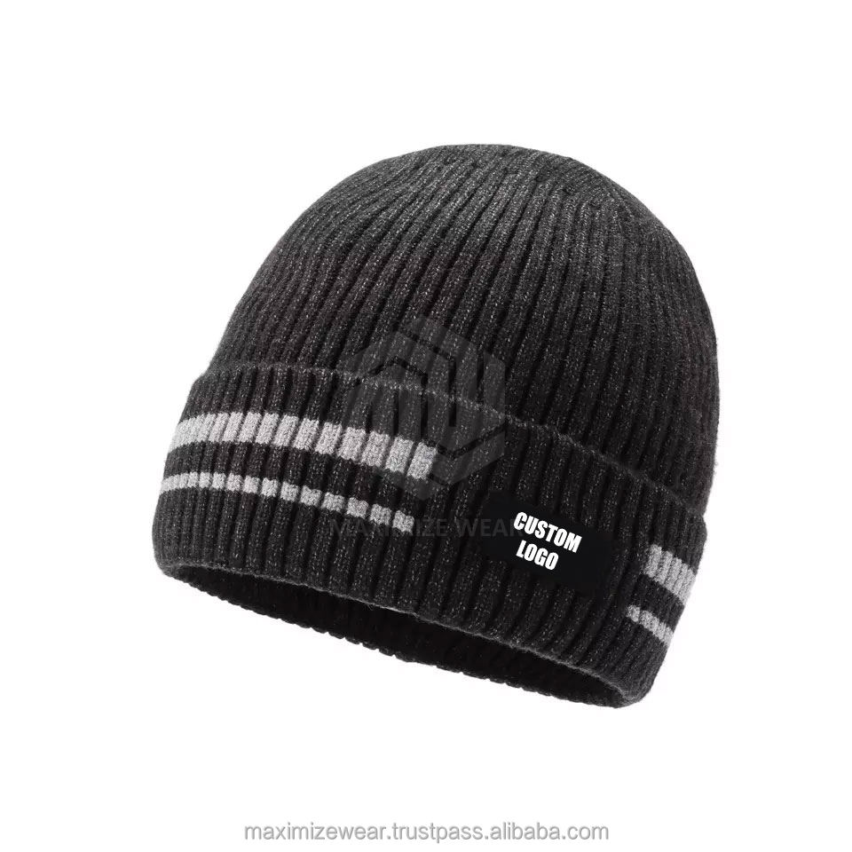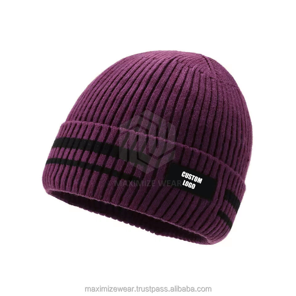 Custom Embroidery logo Warm Beanie Hat Women and Men Acrylic Knitted Soft Stretchy Ski Beanie Hats Winter Knit Wool Beanie Caps