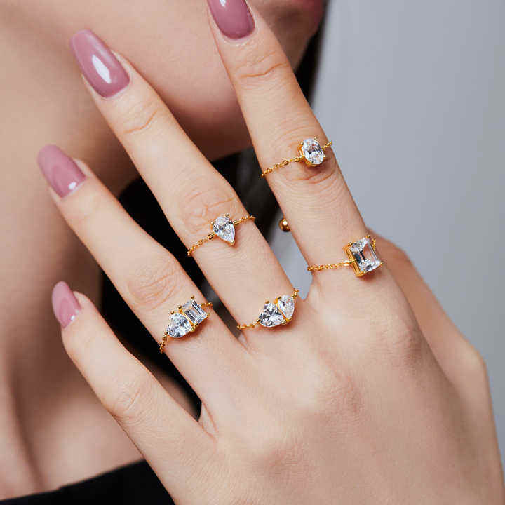 Custom Handmade Double Stone Heart Brilliant Cut Chain Ring Adjustable Sterling Silver Lab Grown Diamond IGI Certified Eternity