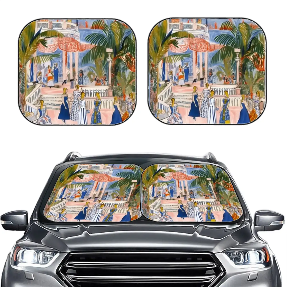 Custom image 2-Piece Business Style Front Windshield Sun Shade Foldable Cloth Leather Nylon Material