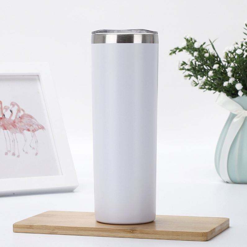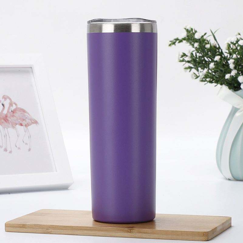 Custom logo 20oz Powder Coated Double Wall Stainless Steel Skinny Tumbler with Straw
