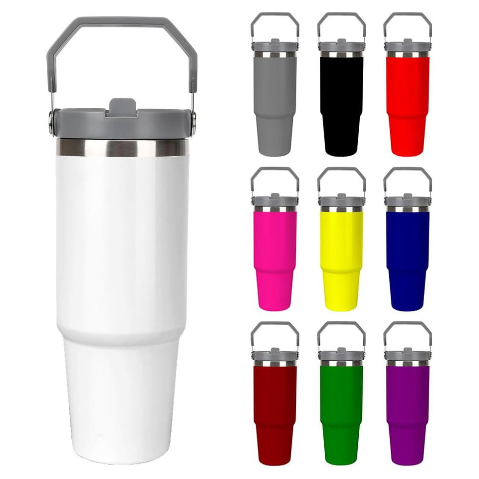 Custom logo 30 oz Travel Coffee Mug Stainless Steel 30oz Thermal 30oz Cup Flip Straw Tumbler with Handle