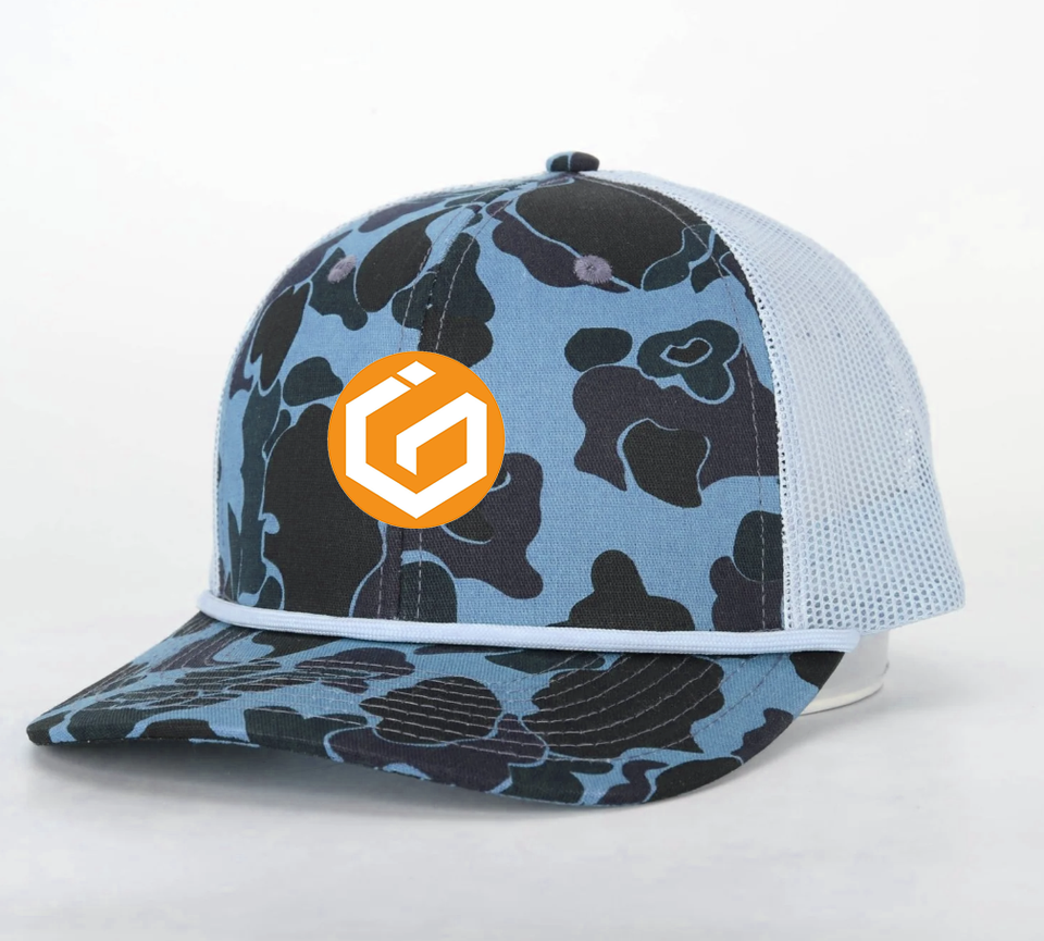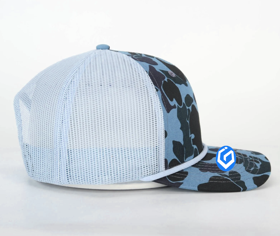Custom logo 6 Panel Duck Camo Rope Leather Patch Trucker Hat Camo Printed Structured Baseball Cap Camouflage Snapback Hat