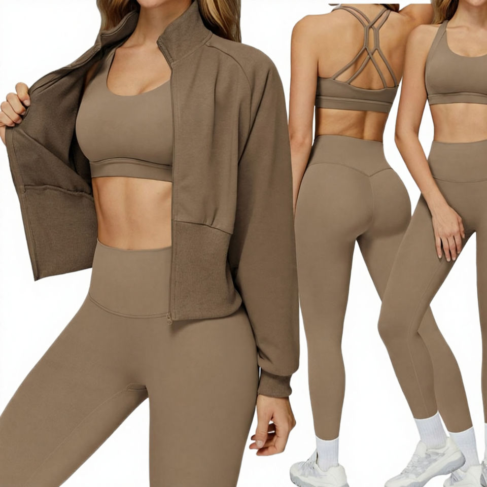 Custom Logo Acid Wash Lace Belt Women's Yoga Leggings 3-Piece Winter Active Wear Set Breathable Gym Apparel