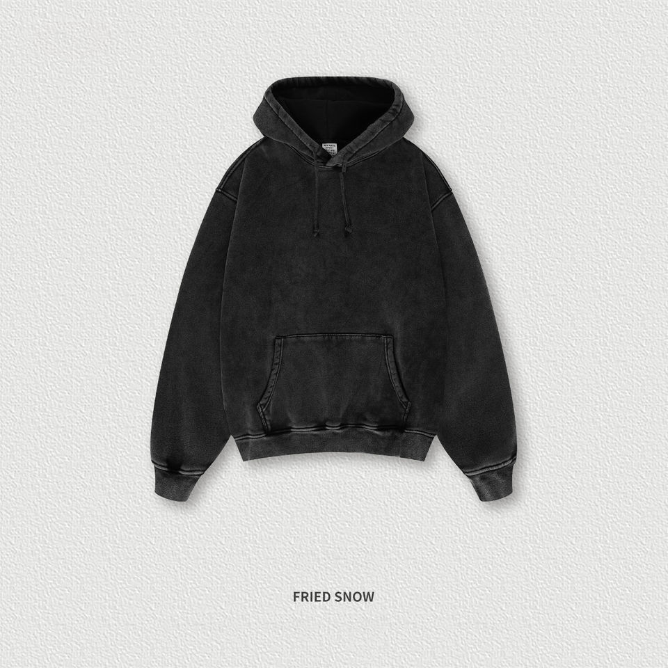 Custom logo Black Oversize Pullover Hoodies Unisex Vintage Acid Wash 500 GSM Hoodie ultra Soft Heavyweight Hoodie