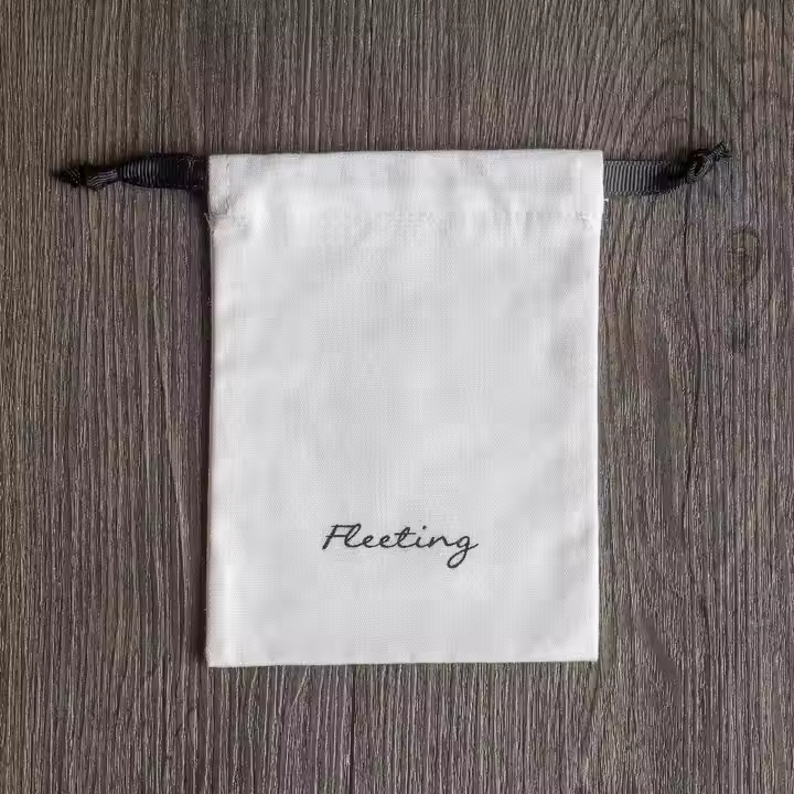 Custom logo Cotton Canvas Fabric Muslin Drawstring Bag with Printed Canvas Drawstring Bag Dust Gift Earing Ring Jewelry Bag