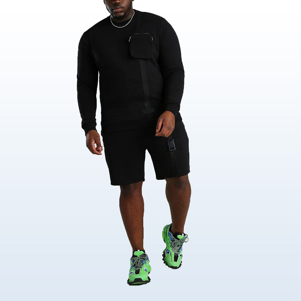 Custom logo Crewneck Blank 100% Cotton Printing Loose Short Sleeved Streetwear Clothing Sweatshirt and Short 2 Pieces Men Set