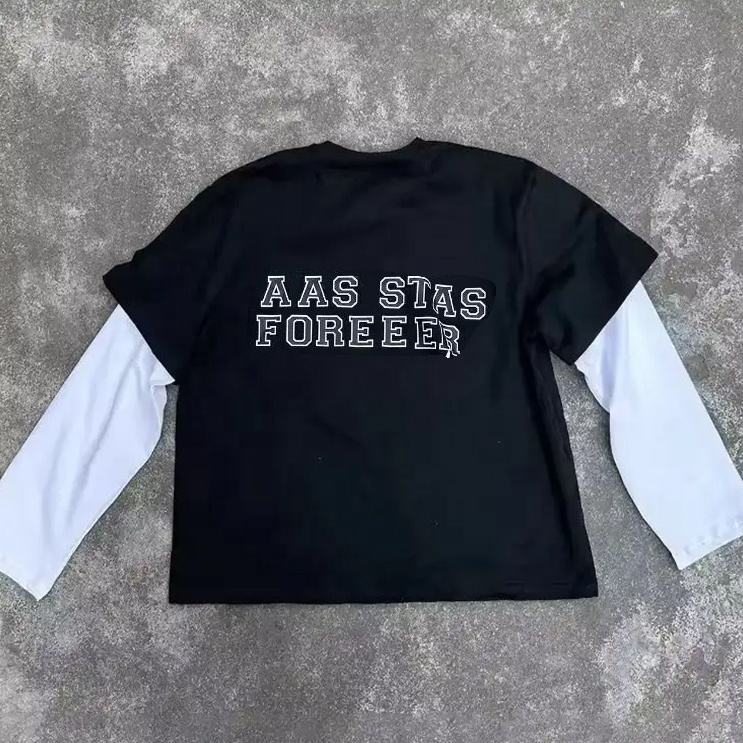 Custom logo DTG Print Long Sleeves Oversized Men Vintage Double Layer Acid Wash Cotton t Shirt