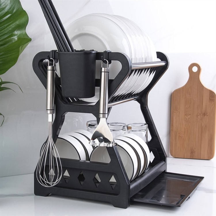 Custom logo Dish Drying Rack with Drainboard Drainer Wall-hung Type Kitchen Light Duty Countertop Utensil Organizer Storage