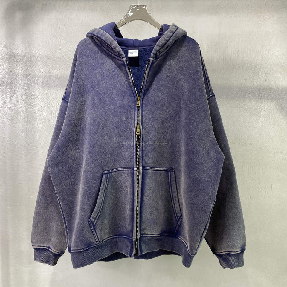 Custom logo French Terry Cotton Puff Printing Vintage Oversized Hoodies Mens Washed 3D Foam Print Full Zip up Hoodie