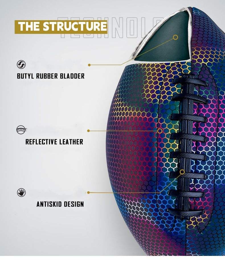 Custom logo Glowing Holographic Reflective American Football Rugby Ball