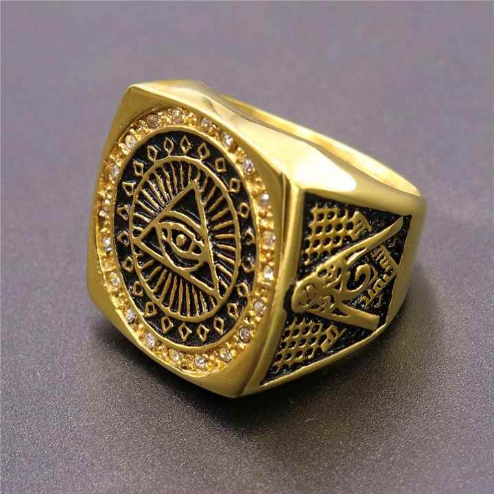 Custom logo Gold Plated Punk Stainless Steel Devil Eye AG Ring Master Mason Masonic Ring for Men Jewelry