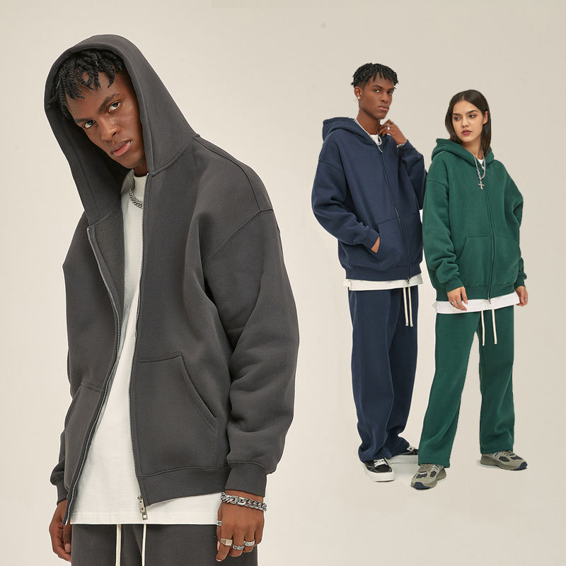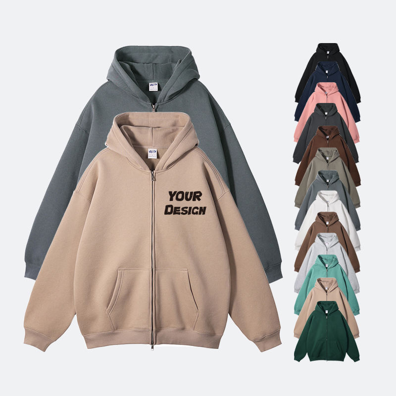 Custom Logo 100% Cotton Heavyweight 350gsm Oversized Thick Drop Shoulder Boxy Fit Cropped Zip Hoodie for Men Embroidered Hoodies