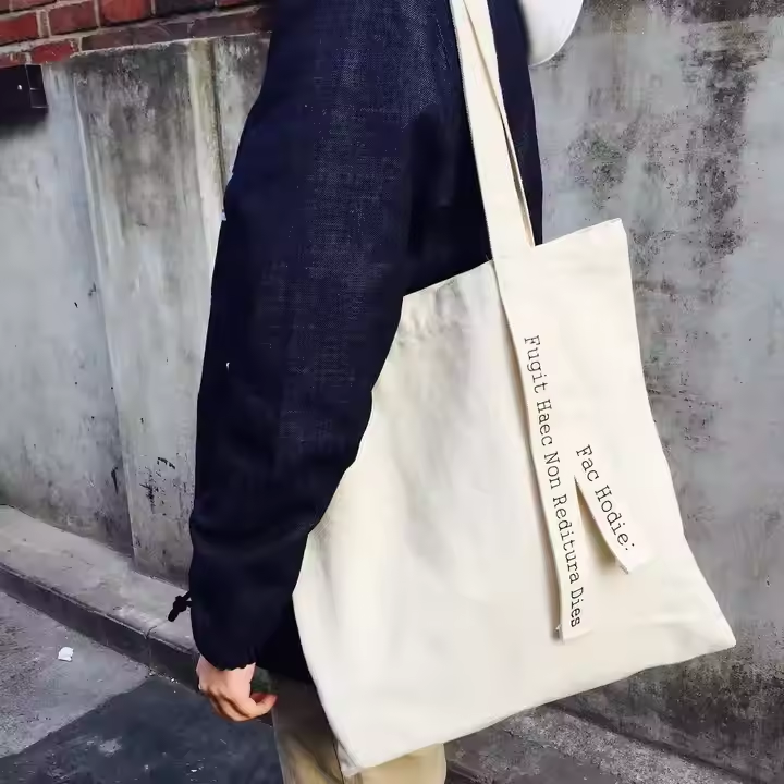 Custom logo Ivory Black Women Letter Reinforced Handle Weeekends Canvas Cotton Tote Shopping Bag