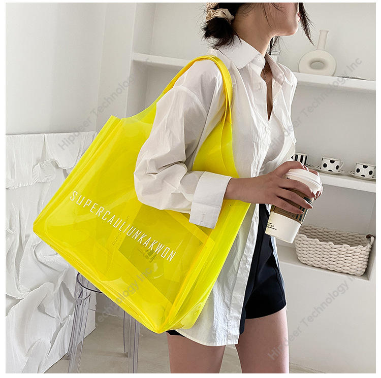 Custom logo Large Transparent Jelly Candy Neon Black Yellow Beach Gift Summer PVC Beach Shopping Tote Bag