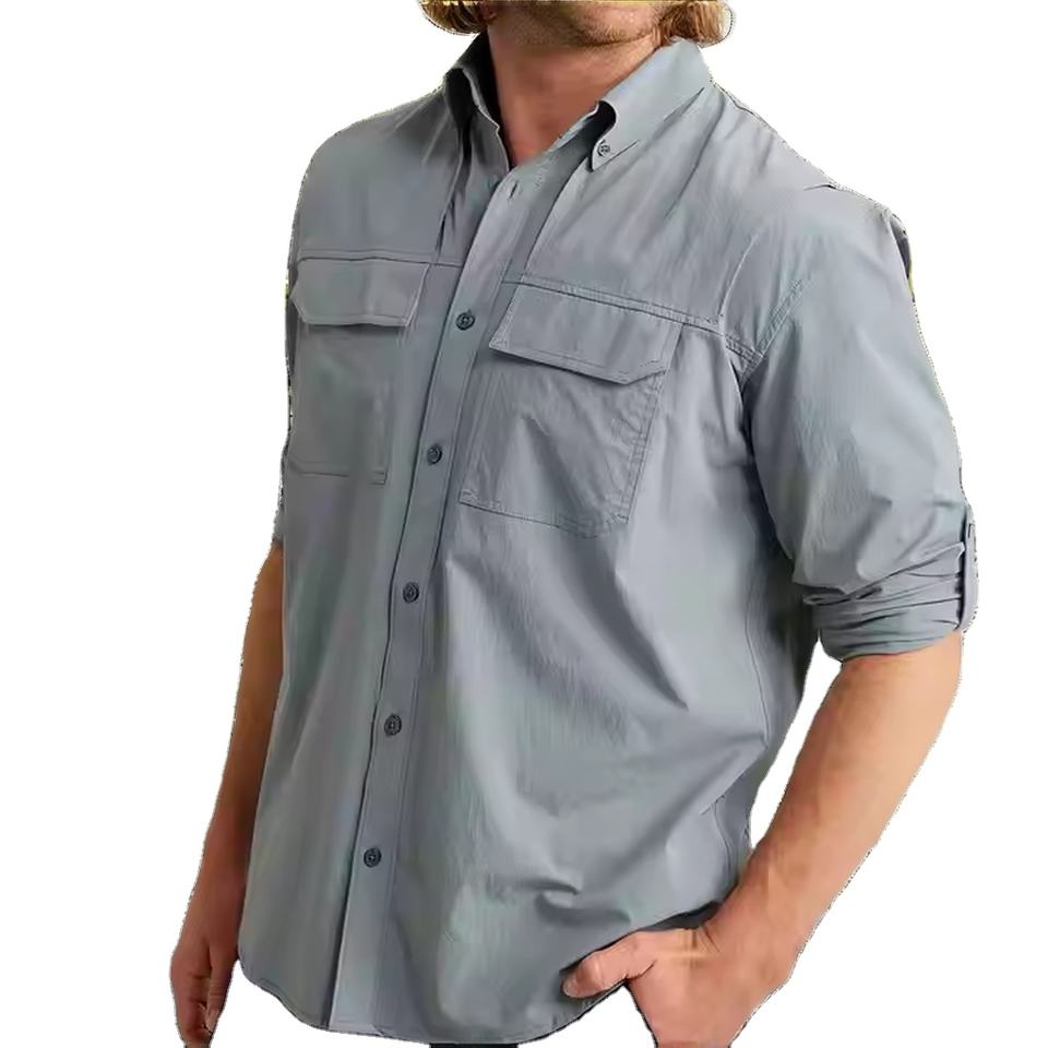 Custom logo Long-sleeved Windproof Lightweight Sun-protective 100% Polyester Shirt UPF 50 UV Quick-drying Cooling Fishing Work