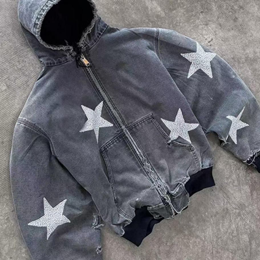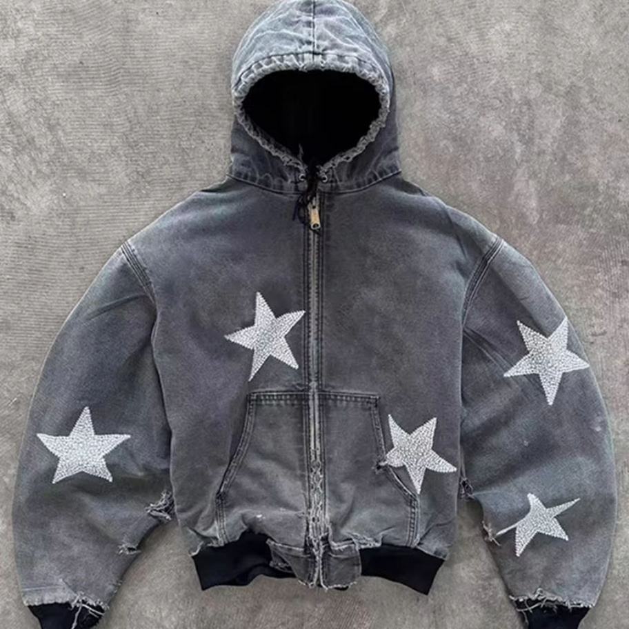 Custom logo Manufacturer Digital Printed 420GSM Comfy Hoodie Vintage Acid Washed Hoodie Powder Puff Sleeve for Men Zip up Hoodie