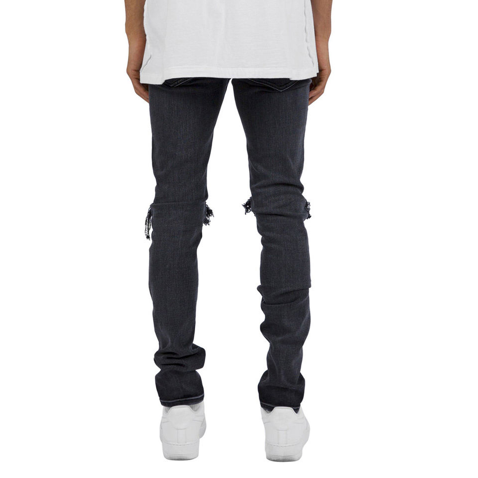 Custom logo Men's Jeans Hip Hop High Quality Pantaloons Jeans Vintage Stylish Slim Pant Ripped Stacked Blue Jeans Men