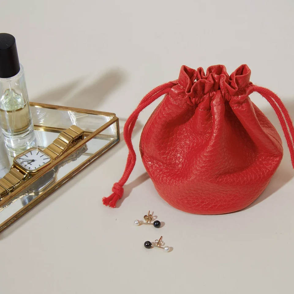 Custom logo Mini Leather Pouch for Jewellery Packaging Luxury Coin Small Accessories Red Leather Pouch