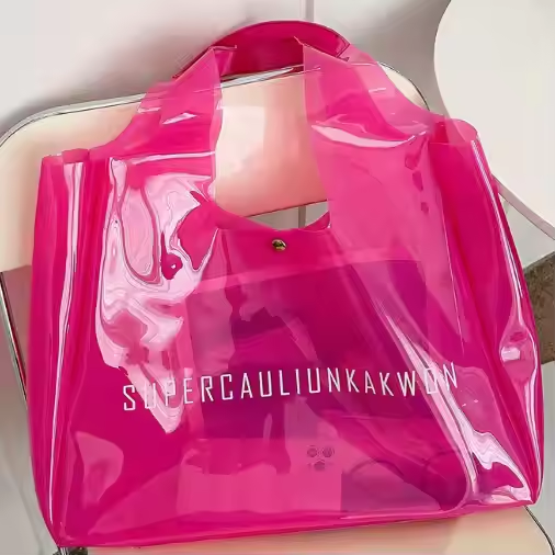 Custom logo Plastic Gift Holographic Purple pink Green PVC Shopping Tote Bag with Black Handle