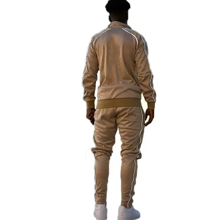 Custom logo Private Label Design Your Own Reflective Tracksuit Polyester Side Stripe Slim Fit Zipper Sweat Track Suit for Men