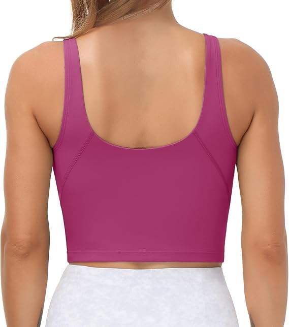 Custom logo Solid Color Crop Top Cross Back Women Longline Sports Bra Padded Top