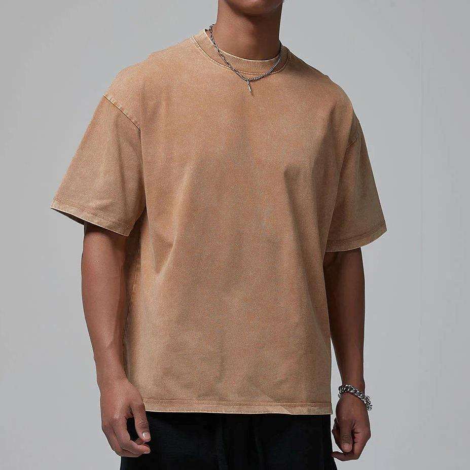 Custom logo Streetwear Oversized Heavy Cotton Men's T-shirts Graphic High Quality Print Brown Acid Wash t Shirt for Men