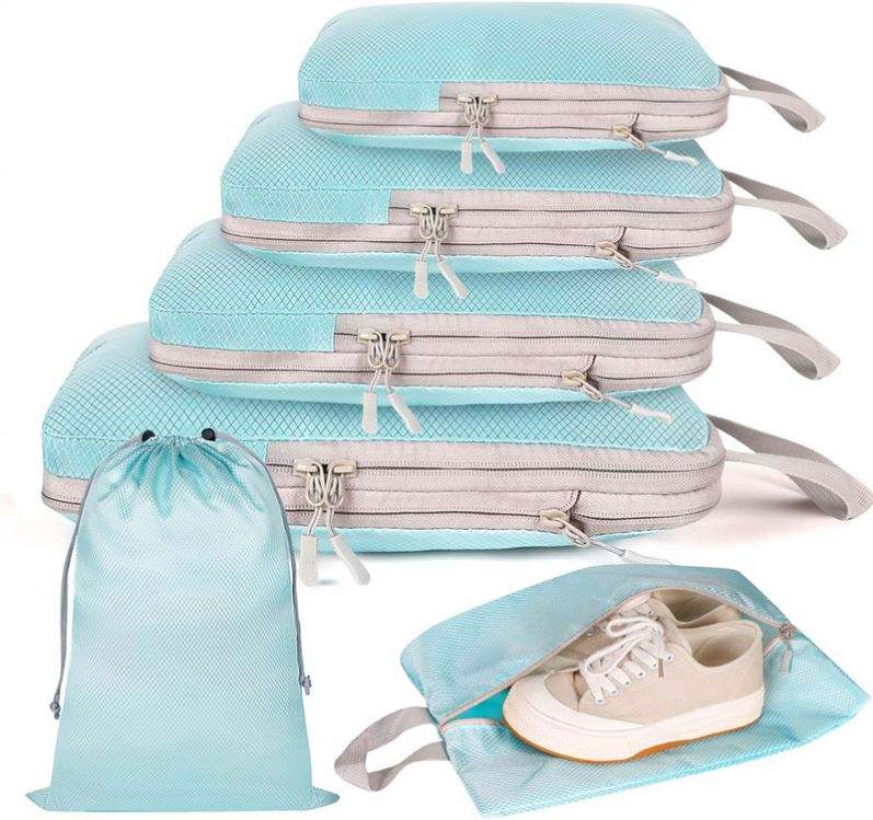 Custom logo Travel Accessories Laundry Pouch 6pcs Pack Cubes Set Coloured Compression Packing Cubes Travel