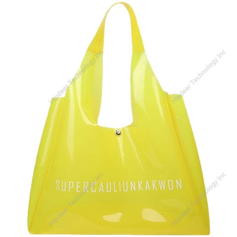 Custom logo Waterproof Neon Transparent PVC Gift Party Bridesmaid Shopping Tote Bag with Thick Rope Cotton Handle