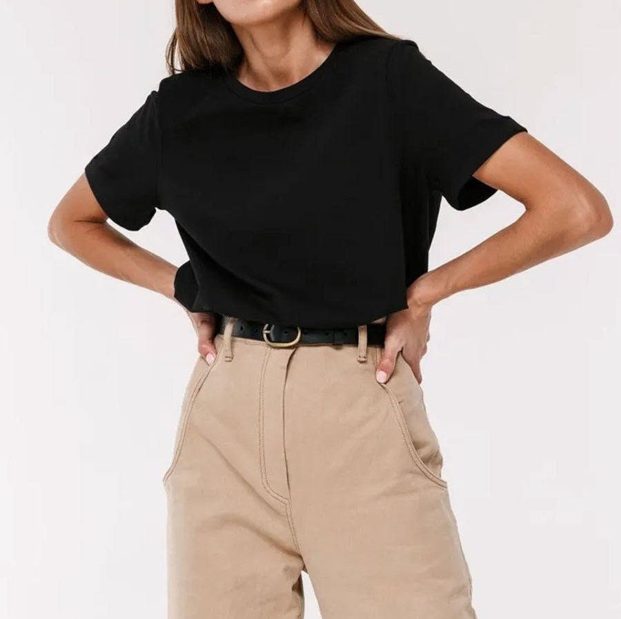 Lavida Crew Neck Side Gathered Short Sleeve 100% Cotton Women's Tshirt