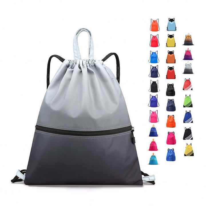 Custom Logo Wholesale Waterproof Polyester Zipper Drawstring Backpack 20-38L Reusable Outdoor Sports Gym Storage Bag