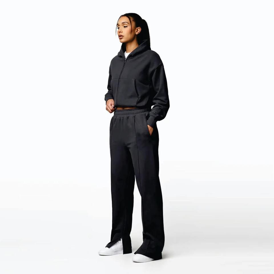 Custom Logo Women's Oversized Heavy Weight Zip-Up Knitted Acid Wash Winter Hoodie with Drop-Shoulder Sleeves 100% Cotton Fleece