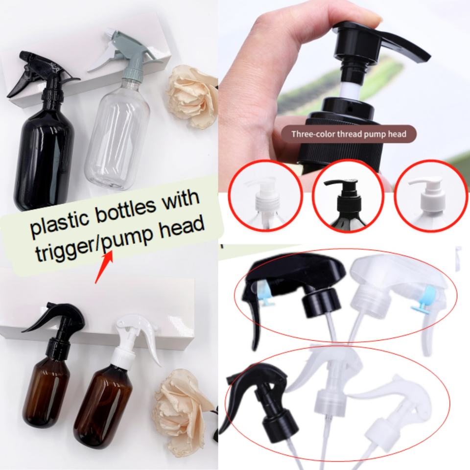 Custom logo clear Transparent Brown White Black Amber Green 300ml 400ml 500ml Pump Shampoo Bottle with Pump Heads