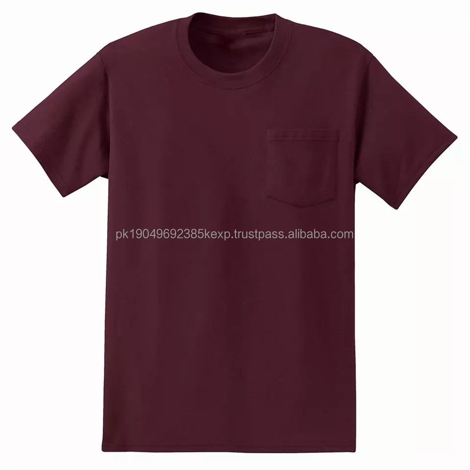 Custom logo cotton pocket t shirt for men with soft breathable fabric and personalized chest print available from manufacturer