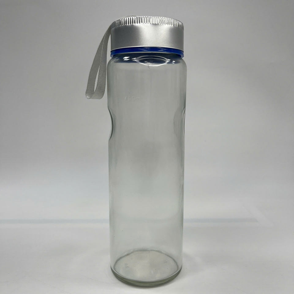 Custom logo glass sports water bottle with plastic cap and strap with protective aluminum foil factory price ready to ship