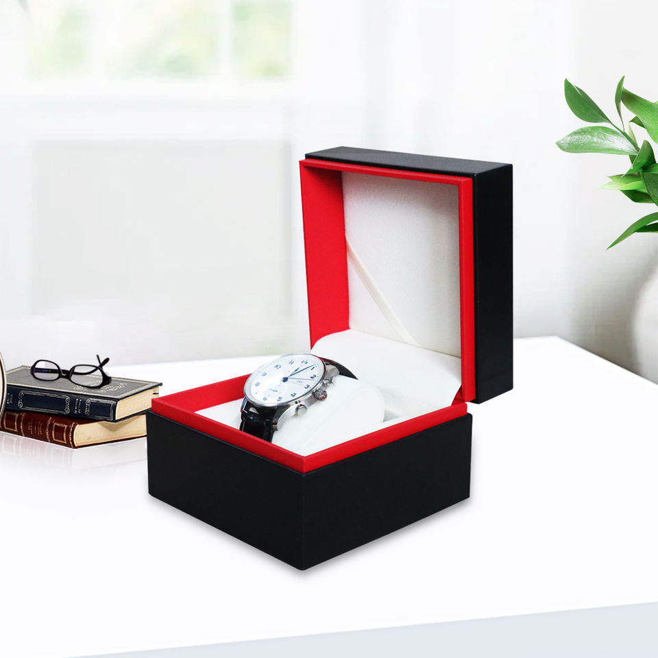 EVERWIN Custom Logo Luxury Leather Watch Display Box with Buckle Closure Velvet Cushion Modern Square Design for Gift Packaging