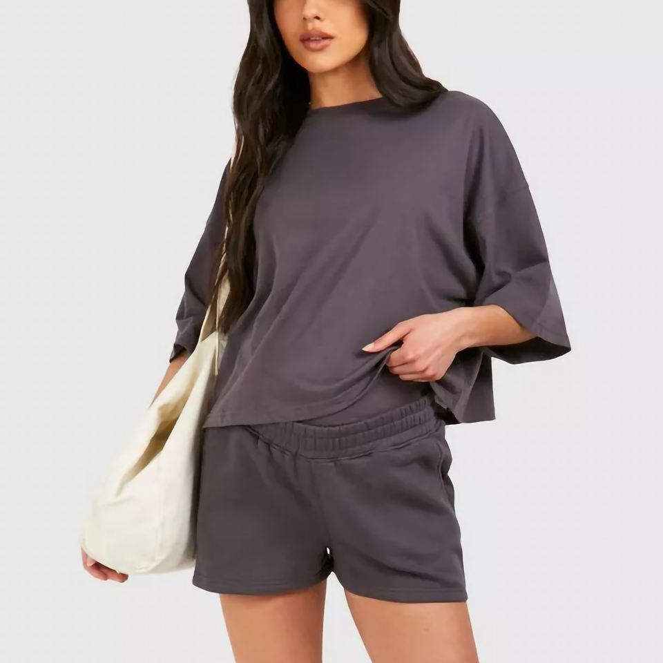 Custom made 100% cotton Woman's 2 pcs Oversized Tee and Short Set custom embroidered logo streetwear Women's jogging Set