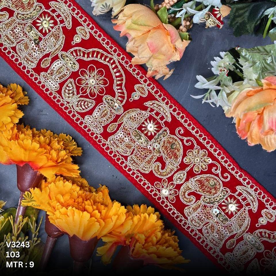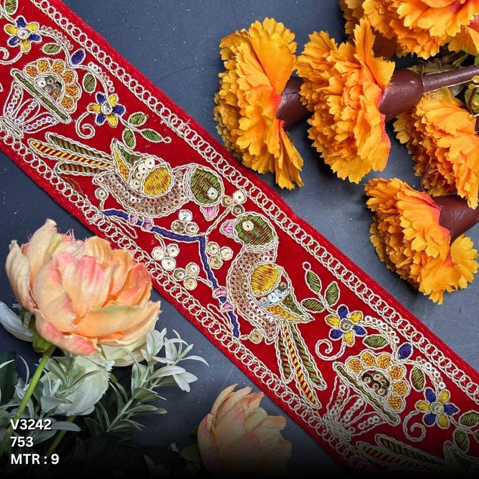 Custom made Bold and elegant red base embroidered lace for bridal couture or festive wear Rich adds luxury to every design.