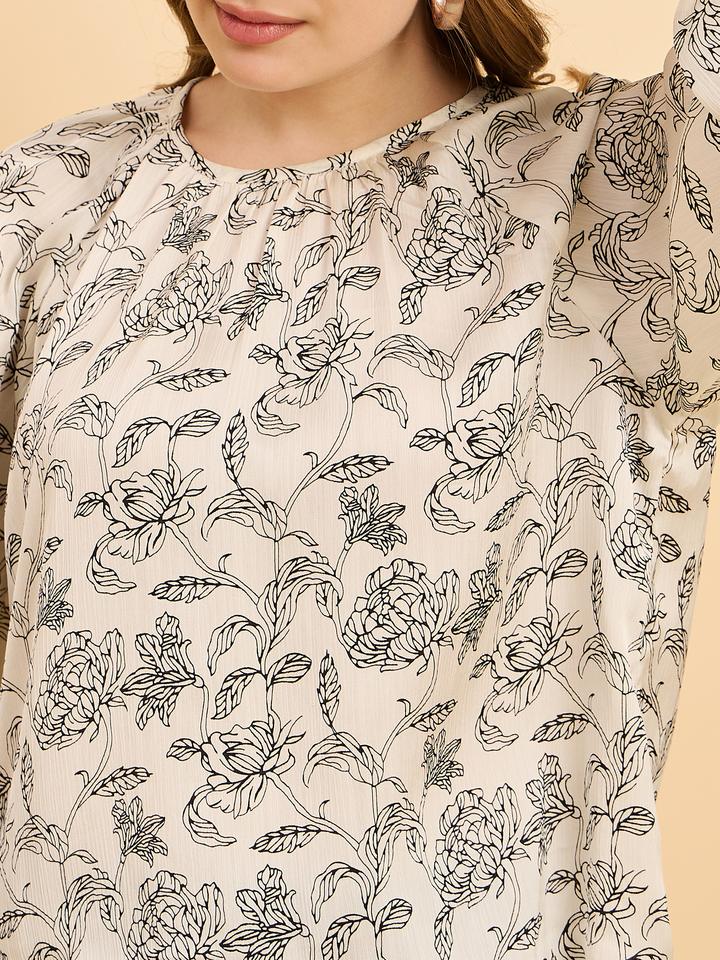Custom made Crinkled Satin Floral Top with Full Sleeves, Gathers & Back Keyhole suitable for boutique clients and resellers